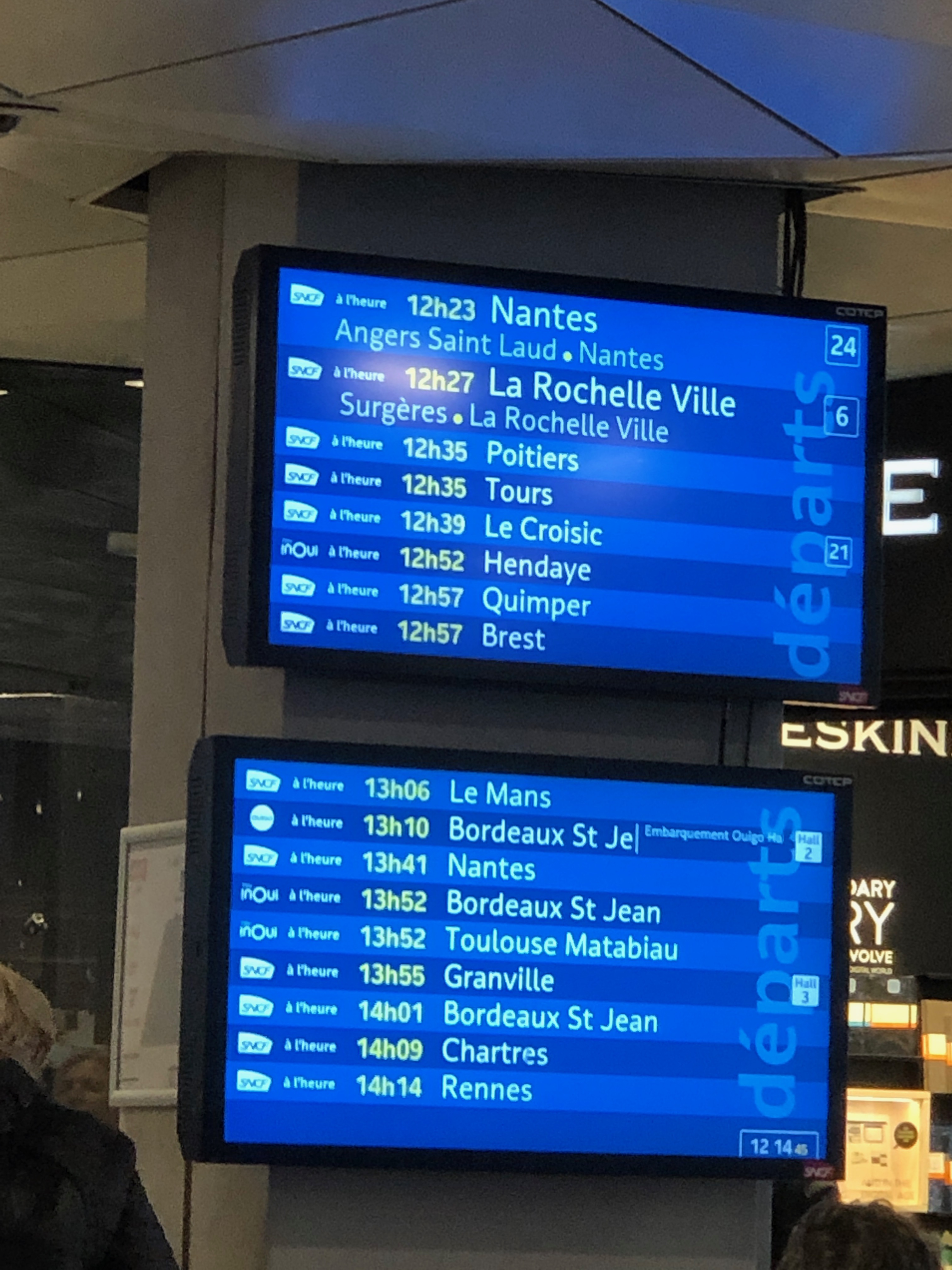 - Abfahrtstafel in Bahnhof Paris Montparnasse