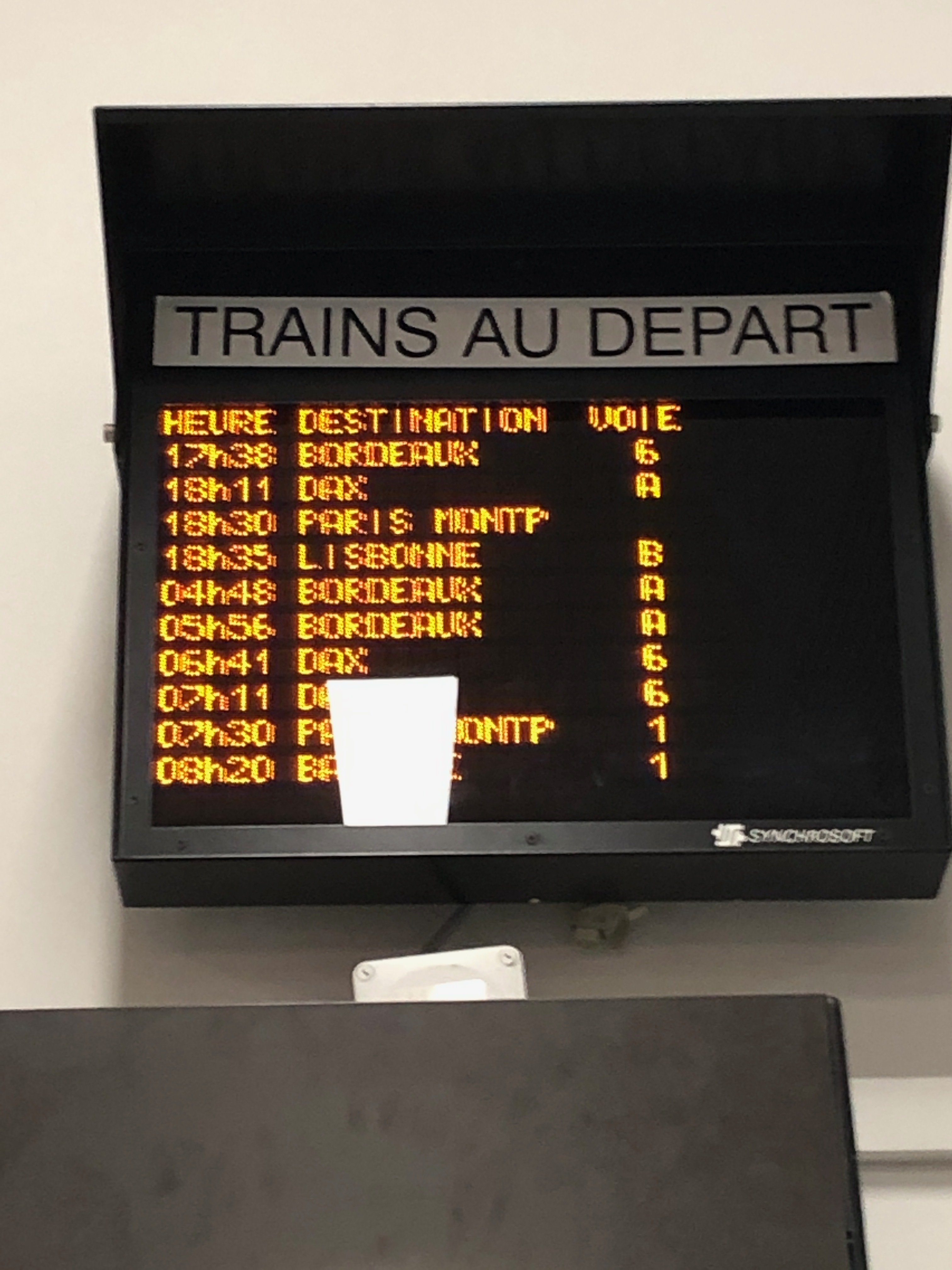 - Abfahrtstafel in Hendaye
