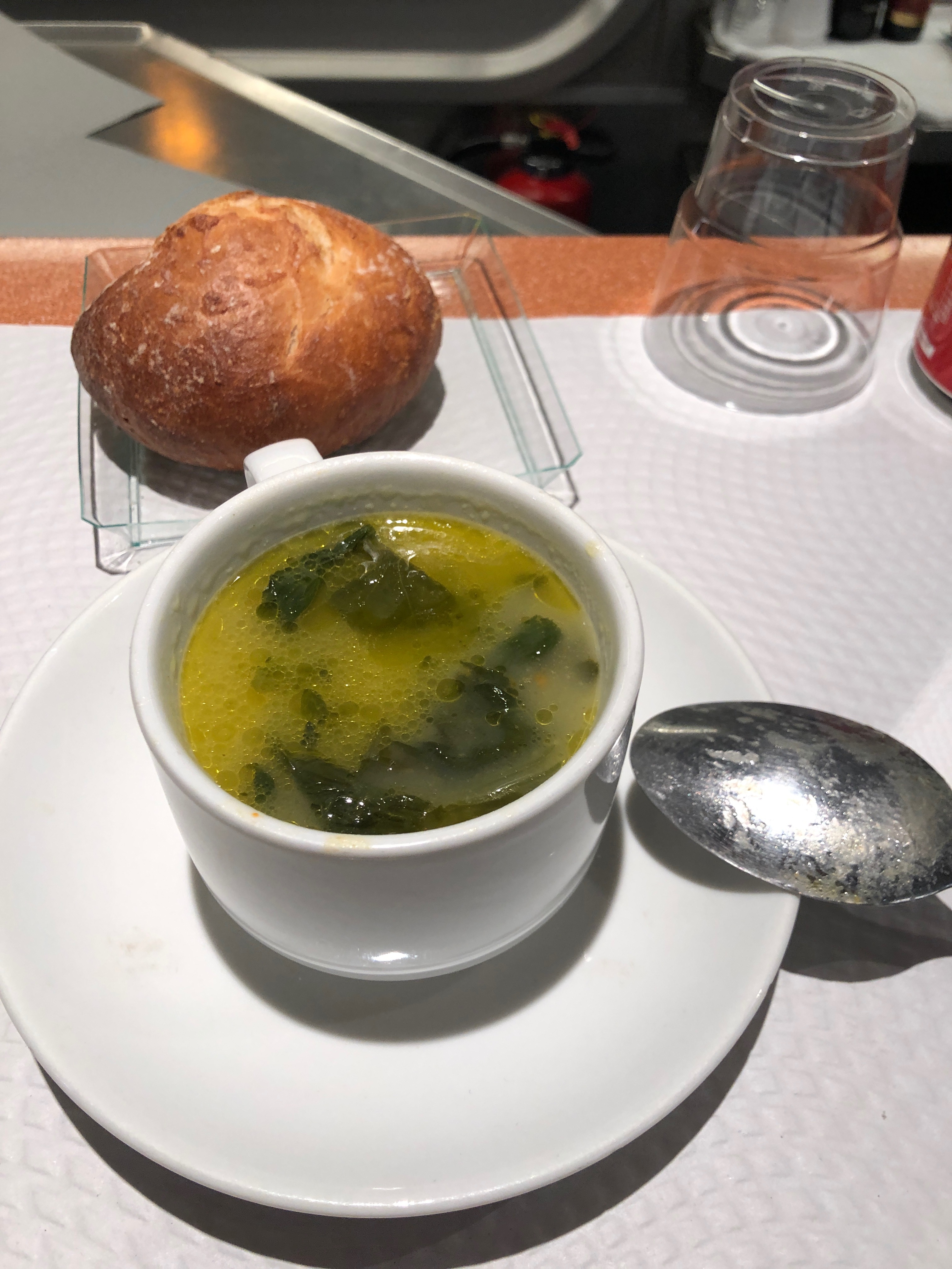- Vorspeise (Gemüse-Suppe mit Brötchen)